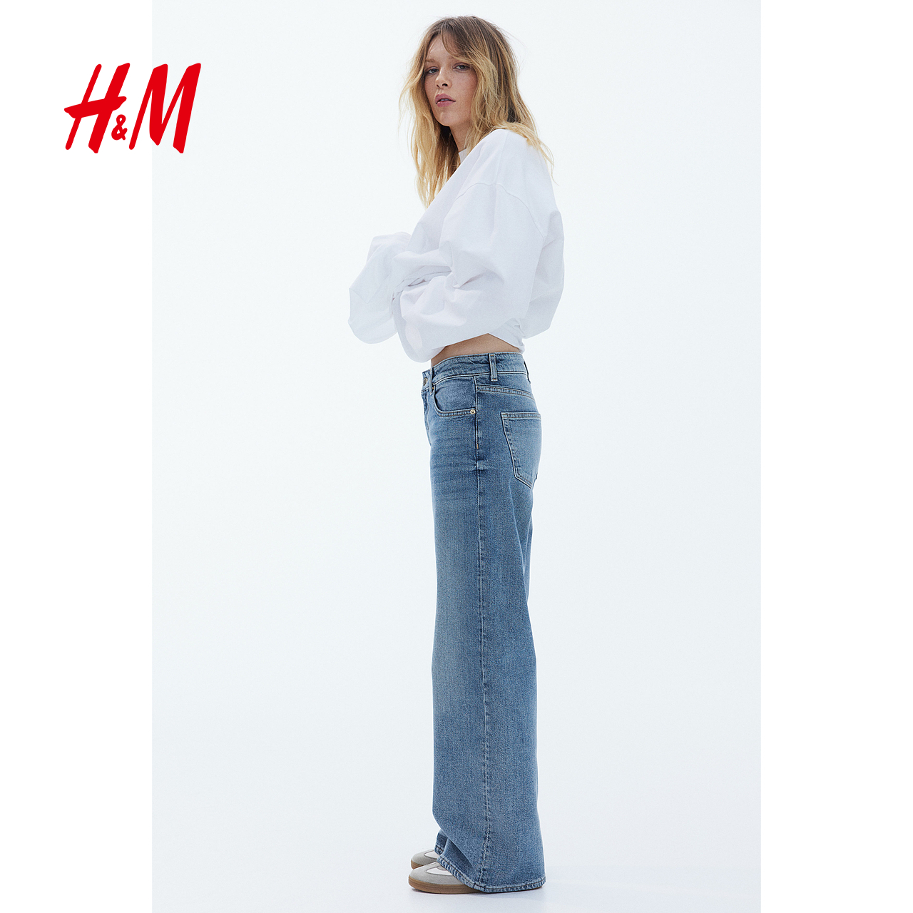 【博主推荐】HM女装牛仔裤通勤高腰水洗裤慵懒阔腿长裤1045459