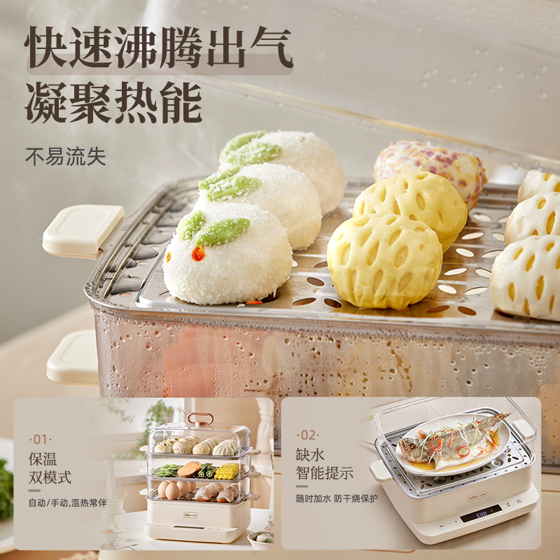 小熊电蒸锅多功能家用三层预约定时蒸锅一体式早餐机蒸蛋器蒸烤箱