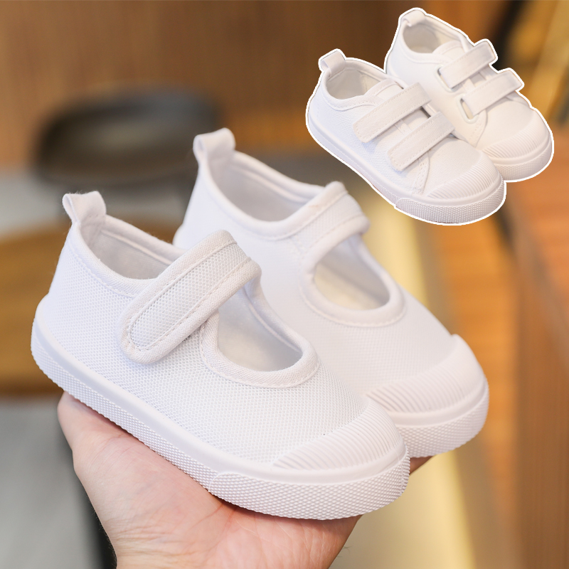 白色儿童帆布鞋幼儿园室内鞋小白鞋男女童中球鞋大童防滑手工低帮
