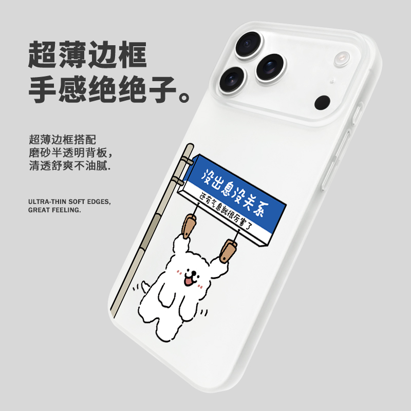 适用苹果17promax超薄磨砂壳16Pro透明壳iPhone15可爱小白狗14promax搞怪创意文字13Pro没出息没关系17不撞壳