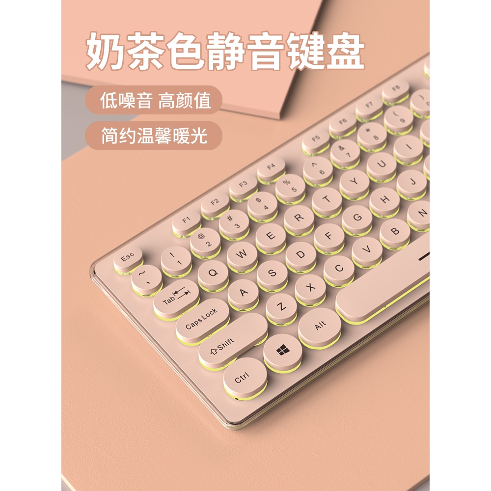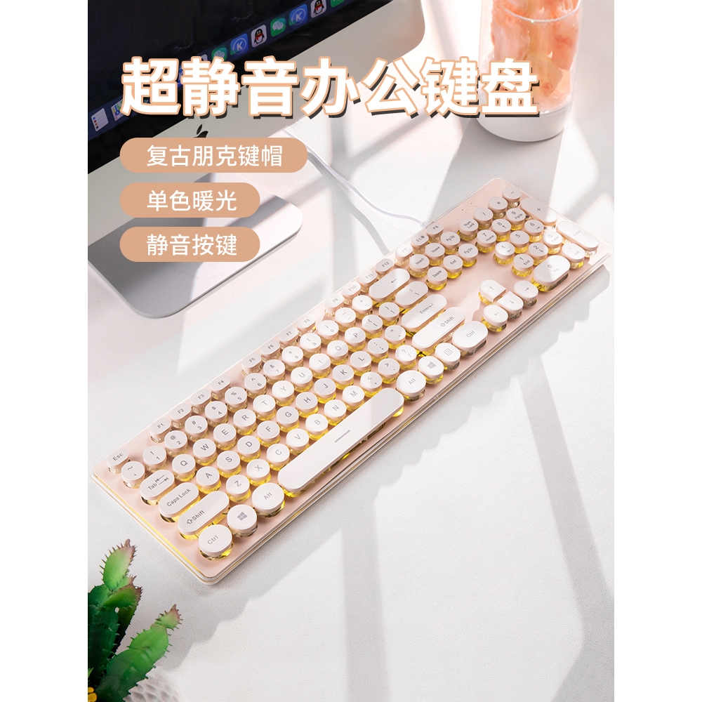 达尔优超薄静音键盘有线电脑女生办公高颜值机械手感朋克鼠标两件