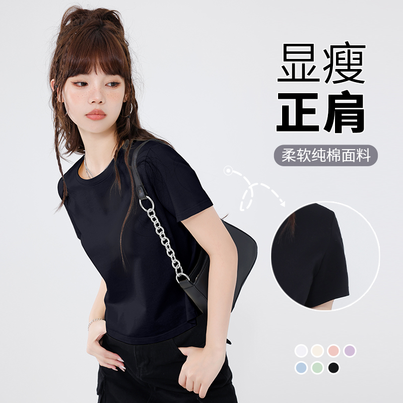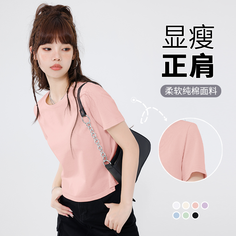 KMV真维斯短袖女2025夏季爆款时尚百搭学生减龄显瘦正肩短款T恤