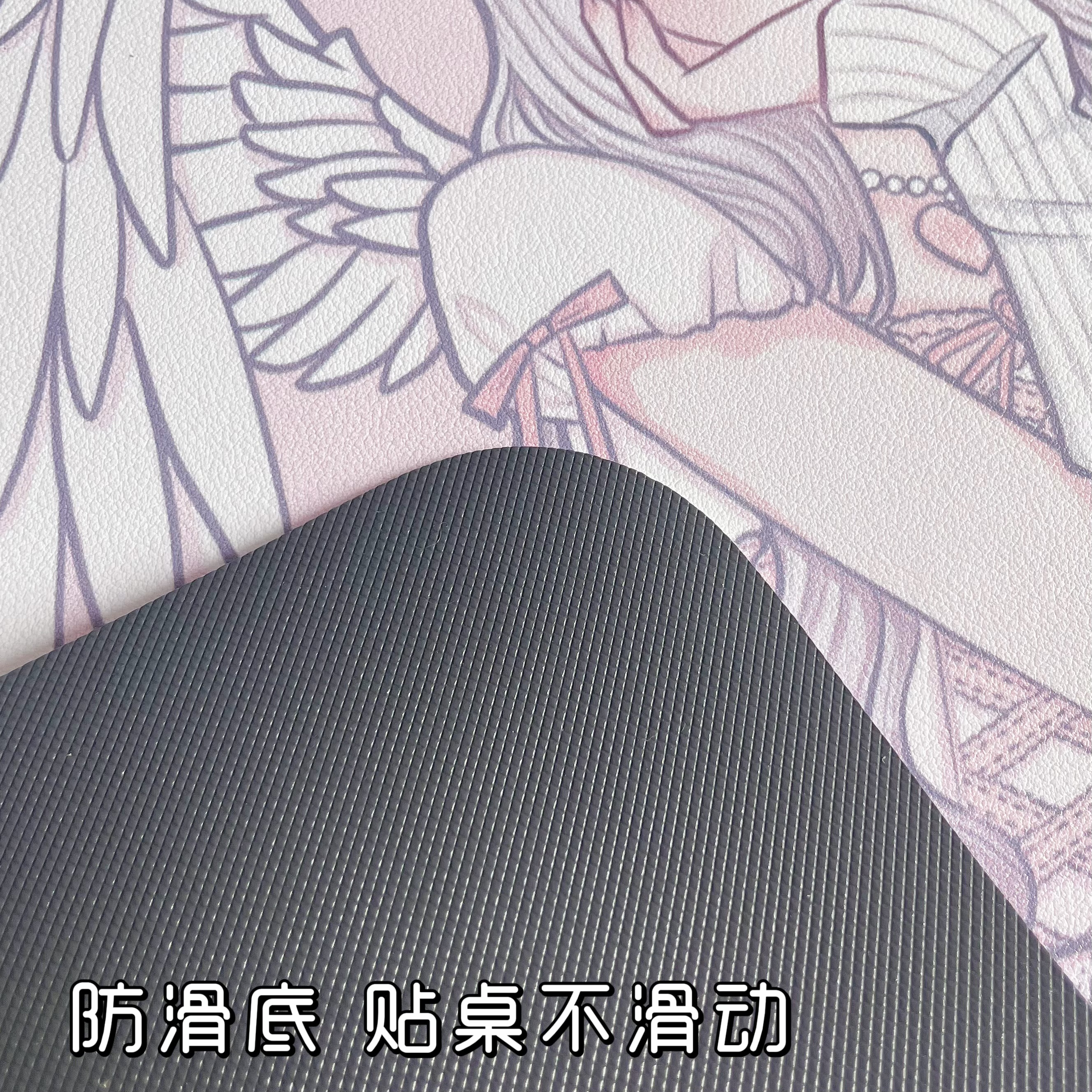可露露原创天使少女皮革桌垫二次元粉色可爱超大防水防滑