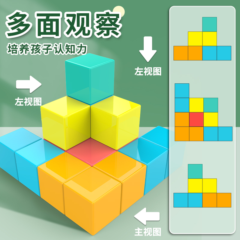 大号六面磁性小正方体长方体积木学具几何体模型观察物体立方块小学数学立体教具教学磁吸形状教师三视图强磁