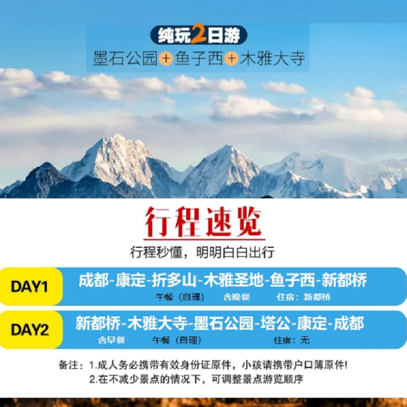 成都到鱼子西墨石公园新都桥折多山两日游可选木格措格底拉姆纯玩