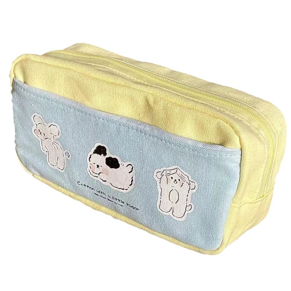 苏在在同款高颜值三只笔袋学生大容量帆布印花文具铅笔收纳袋