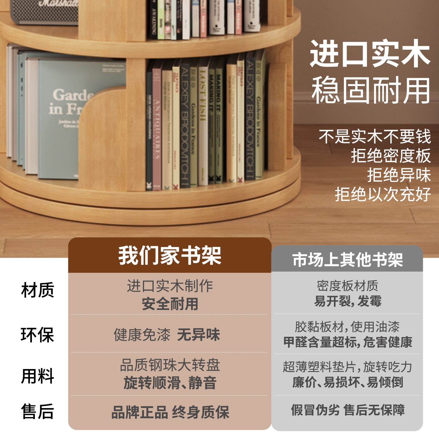 实木旋转书架360度书柜简易家用客厅可移动儿童落地置物架绘本架