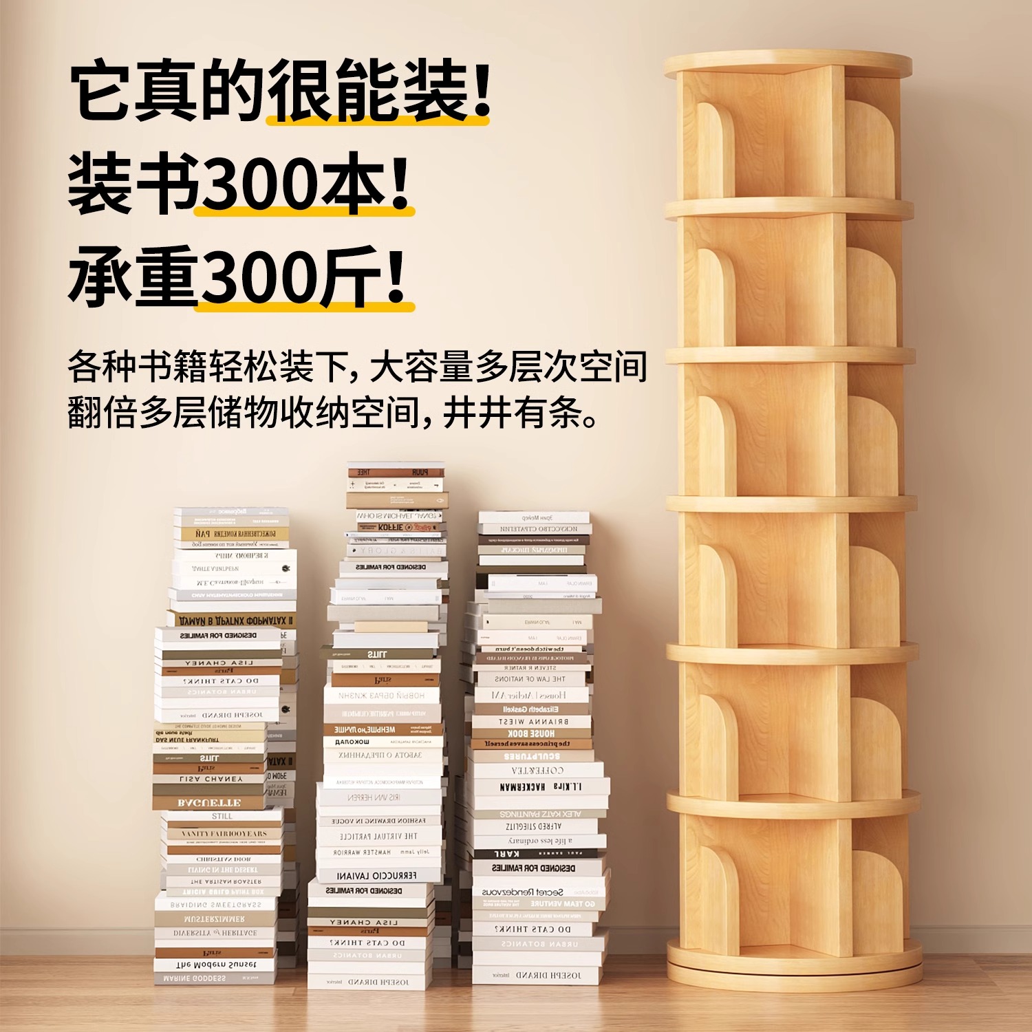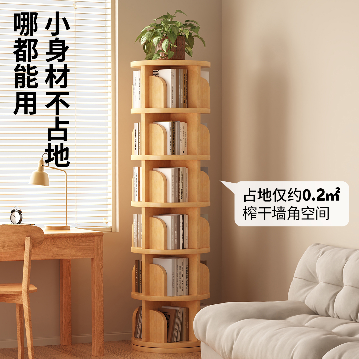 实木旋转书架360度落地置物架一体靠墙书柜可移动落地多层置物架