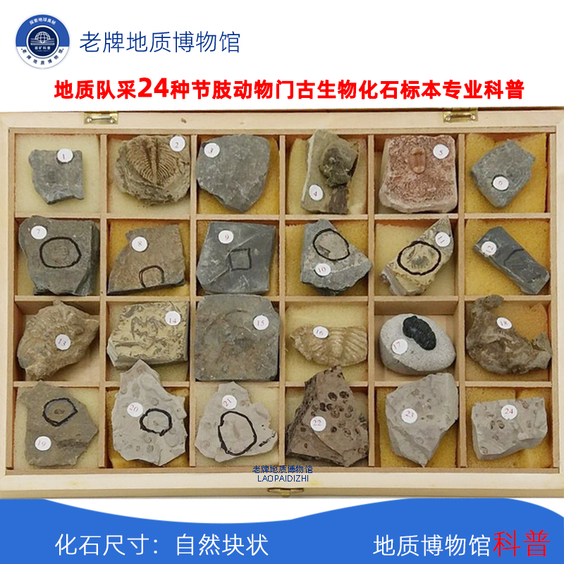 工程师采24种节肢动物门古生物化石标本大中教学用具一年质保特惠