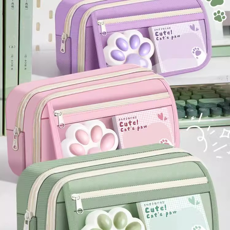 2025新款女孩款笔袋可爱猫爪捏捏乐文具袋大容量女生超火文具盒高颜值铅笔盒小学生少女心女生款儿童铅笔男孩