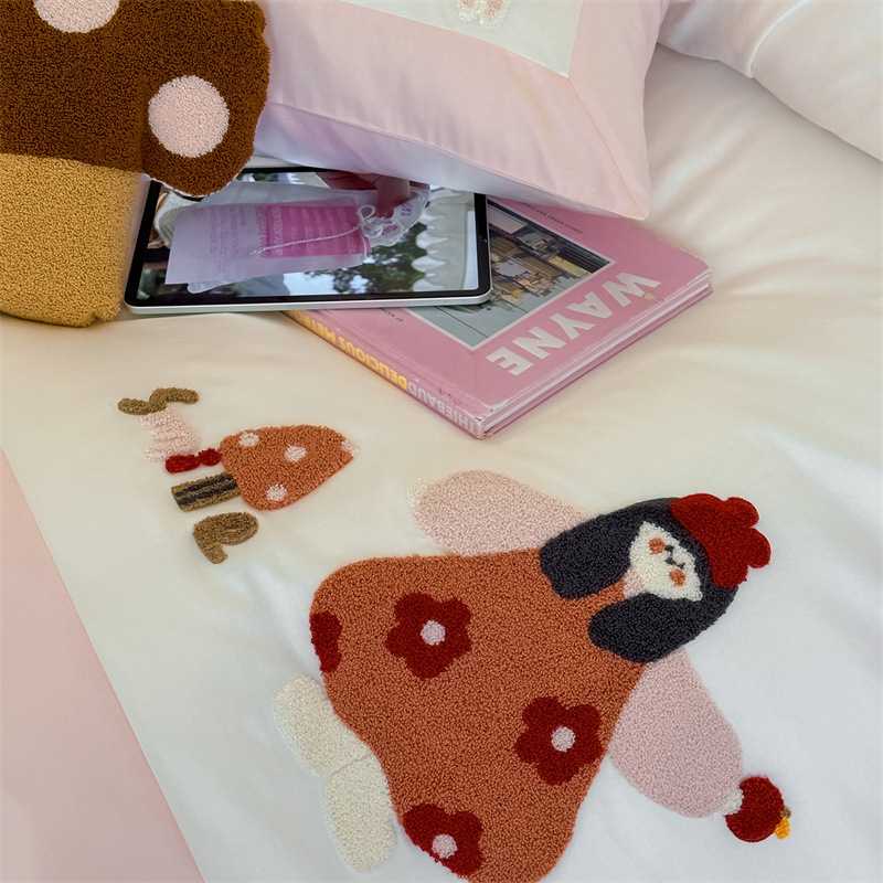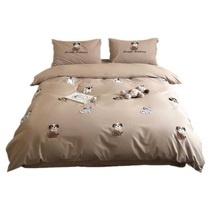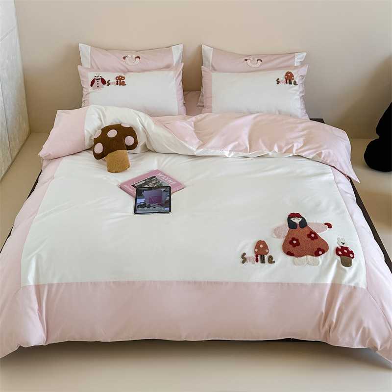 百分百全棉水洗棉卡通毛巾刺绣四件套床笠柔软学生儿童可爱三件套