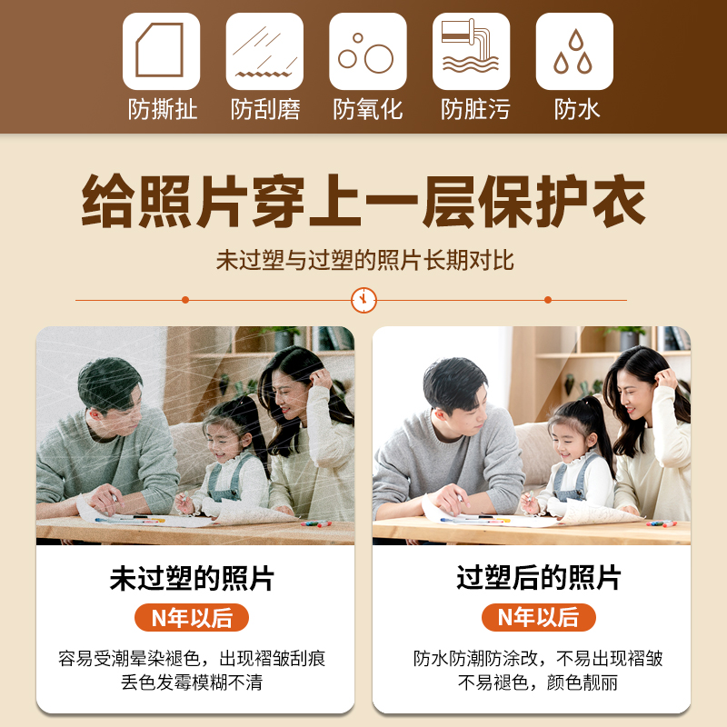 得力照片塑封机办公家用a4相片封塑机压膜机照片热塑覆膜机商用塑封膜3寸5寸6寸7寸8寸A4小型全自动过塑机