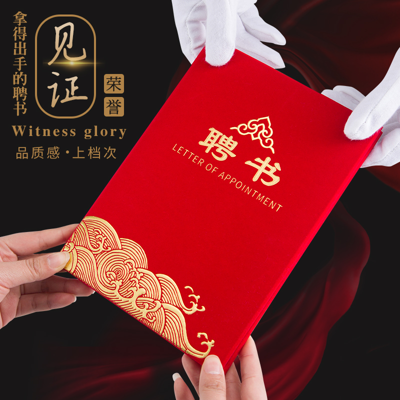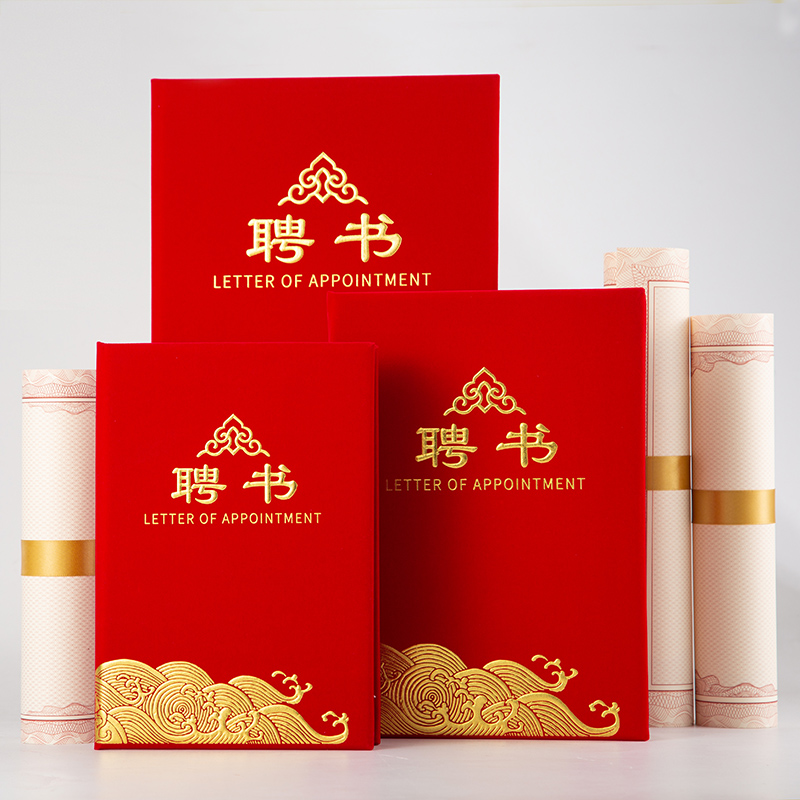 高档红绒面聘书聘请书聘用书聘任书定做任命书封面外壳定制送内页