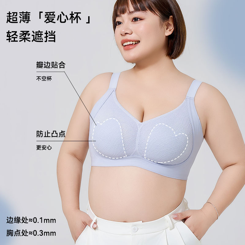 古今大码内衣女胖mm大胸显小薄款无痕聚拢收副乳防下垂蕾丝文胸罩