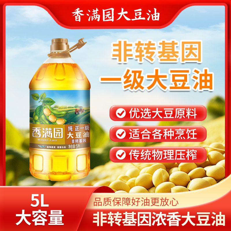 香满园5L非转基因纯正一级大豆油商用家用正宗食用大桶精选
