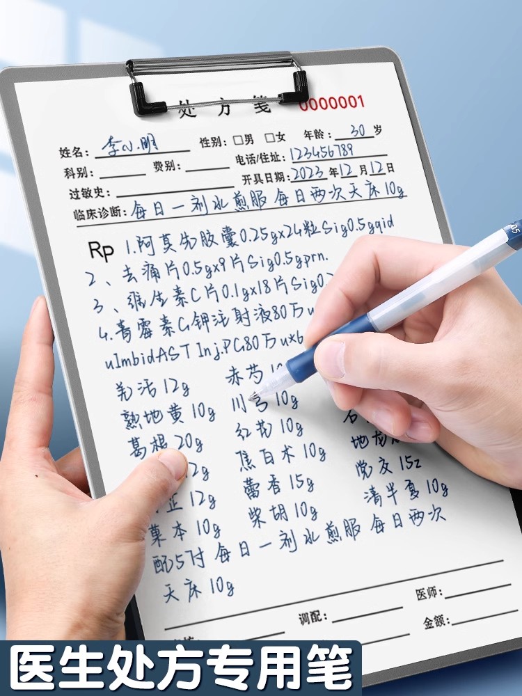 得力处方中性笔墨黑蓝色医护专用按动笔子弹头护士水性签字笔医用按压笔芯0.5蓝黑色医生用按动式水笔S08-C