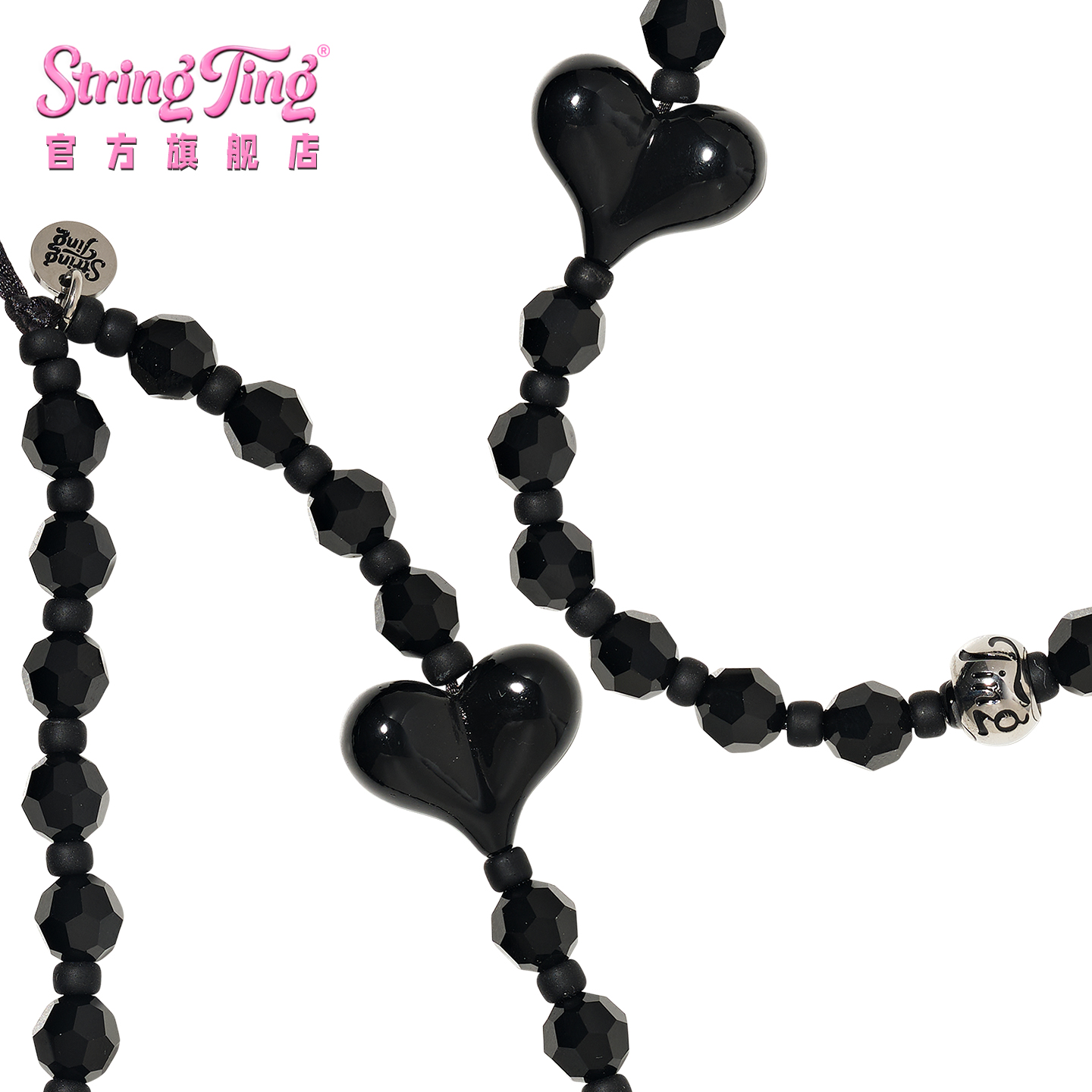 String Ting 午夜闪耀手机链Midnight Shimmer适用于iPhone全系列便携挂链挂绳腕带配件串珠链条ins黑色爱心