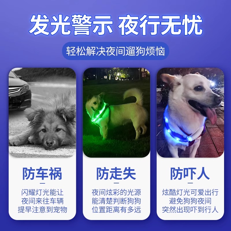 狗狗发光项圈夜间遛狗夜光夜行灯大小型犬防走失带灯充电宠物脖圈