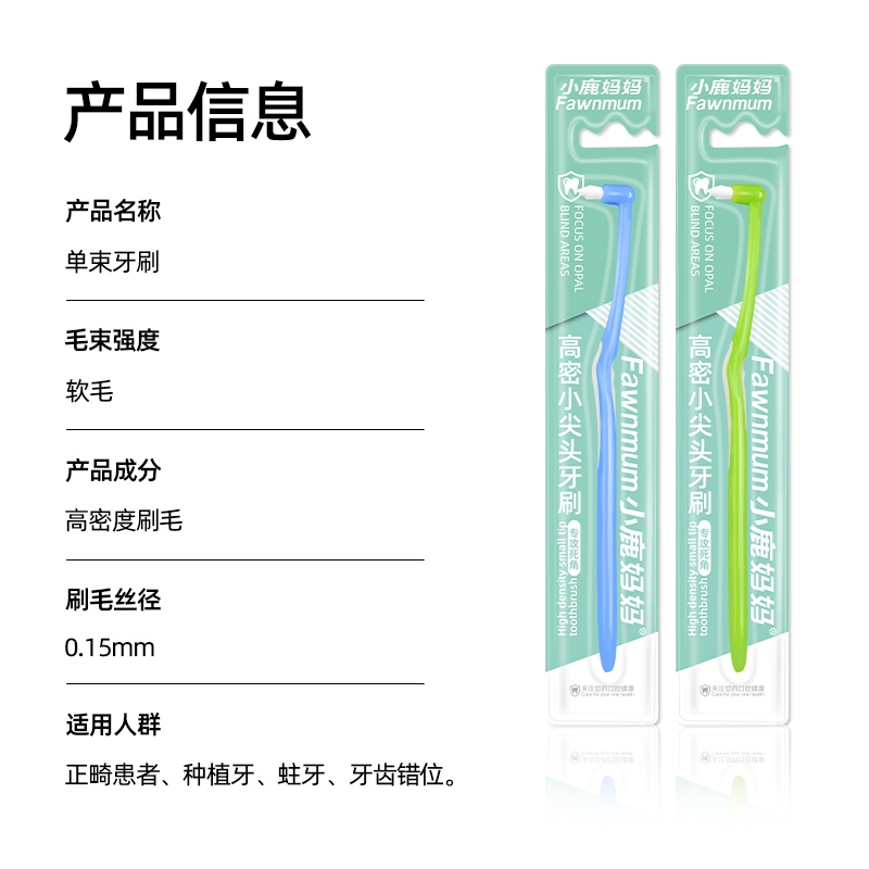 小鹿妈妈正畸牙刷单束小头软毛牙刷牙缝刷尖头牙套刷窝沟智齿清洁