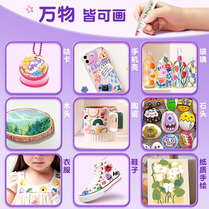 丙烯马克笔小学生专用儿童美术绘画丙稀笔芯水性水彩笔幼儿园涂鸦无毒可水洗不透色可叠色防水比心36色绘画笔
