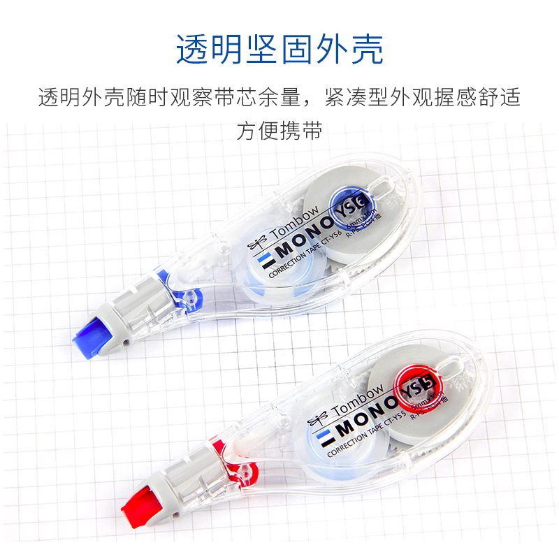 日本Tombow蜻蜓MONO修正带CT-YS5透明多支装修真涂改带10米大容量改正带不易断带小型便携进口文具不易起折