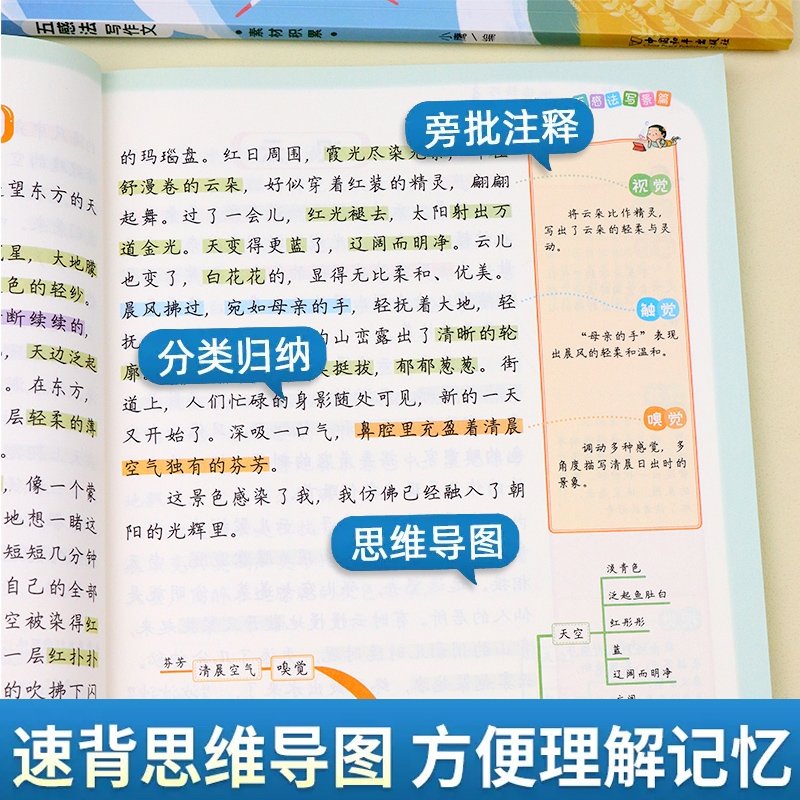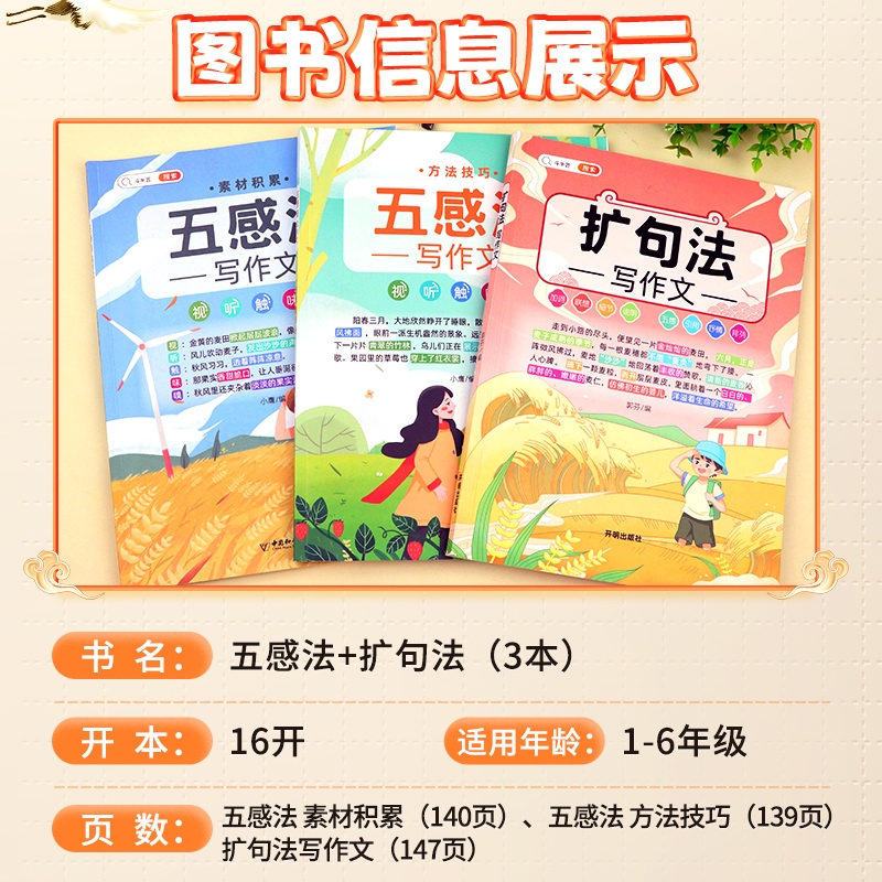 小学语文五感法写作文三年级素材积累四五六年级小学生优秀作文大全一本通满分同步作文金句八百例好词好句好段扩句法写作技巧书