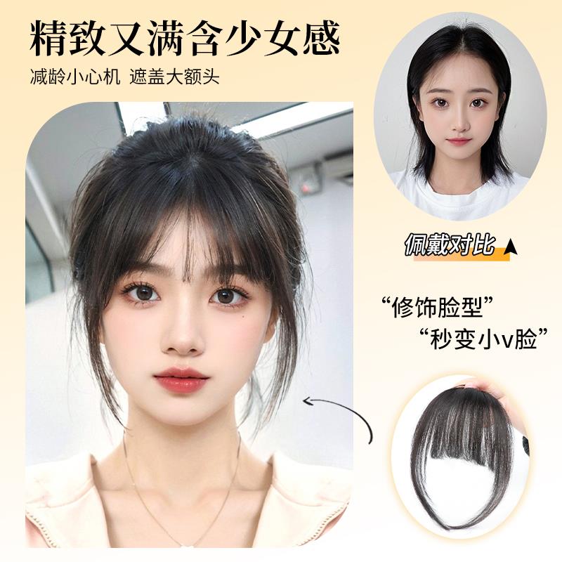 空气刘海假发女片头顶自然前额法式假刘海贴片真发无痕齐刘海八字