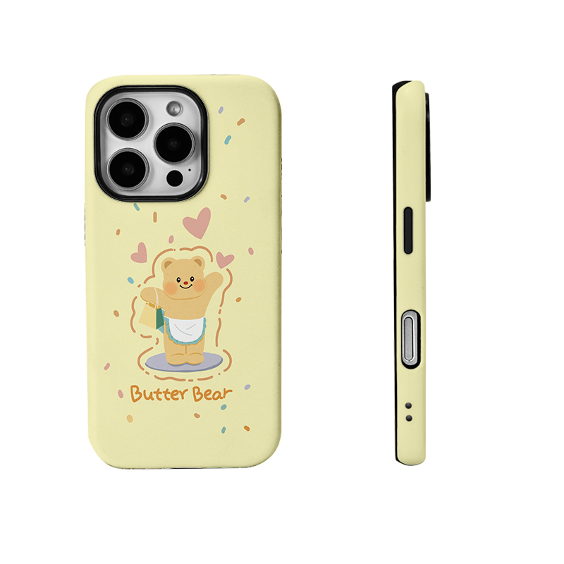 卡通可爱黄油微笑小熊菲林二合一手机壳适用苹果17nova14华为p70mate60小米15opporen14ovivo荣耀300iPhone16
