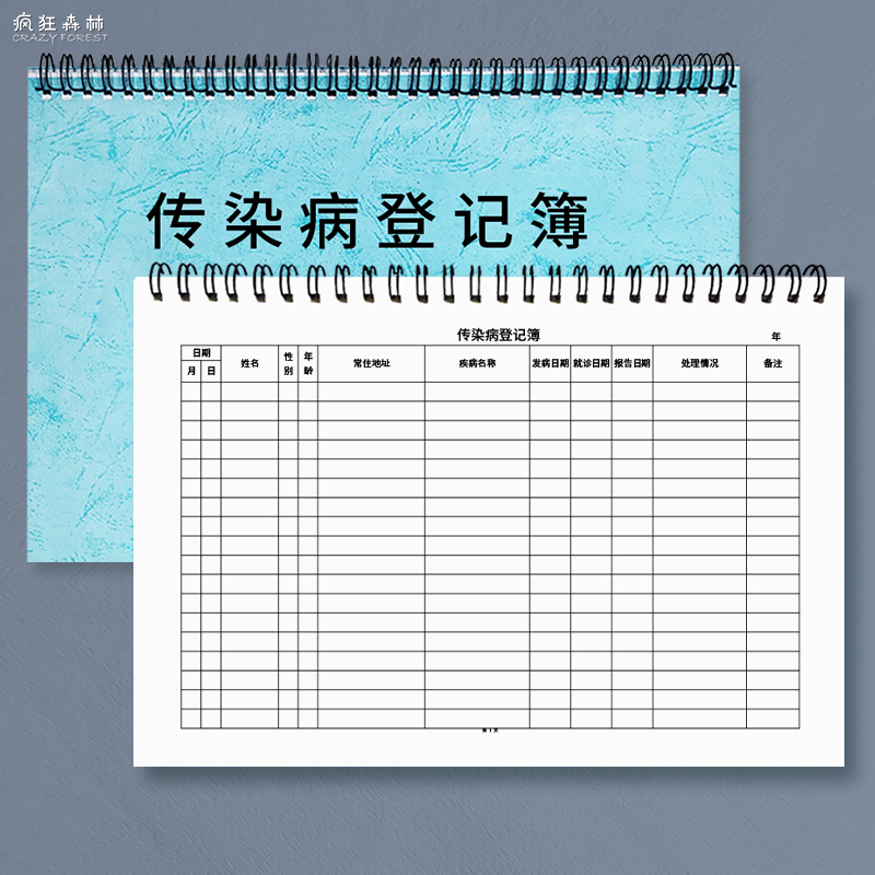 传染病登记本传染病登记表社区门诊传染病人记录本医疗机构传染病患者档案本医院紫外线消毒情况登记本