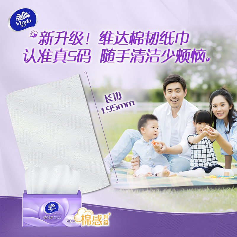 维达立体美棉韧抽纸4D压花面巾纸餐巾纸家用卫生纸抽实惠装纸巾