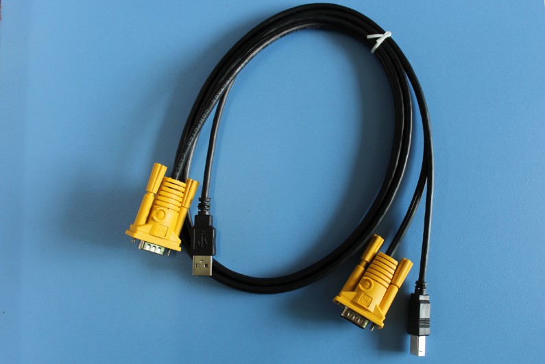 视音速KVM线 USB+VGA KVM切换器专用线USB2.0双并线1.5米3米5米