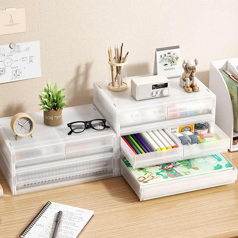 可叠加抽屉式收纳盒整理桌面A4文件资料多层储物盒办公室日式简约