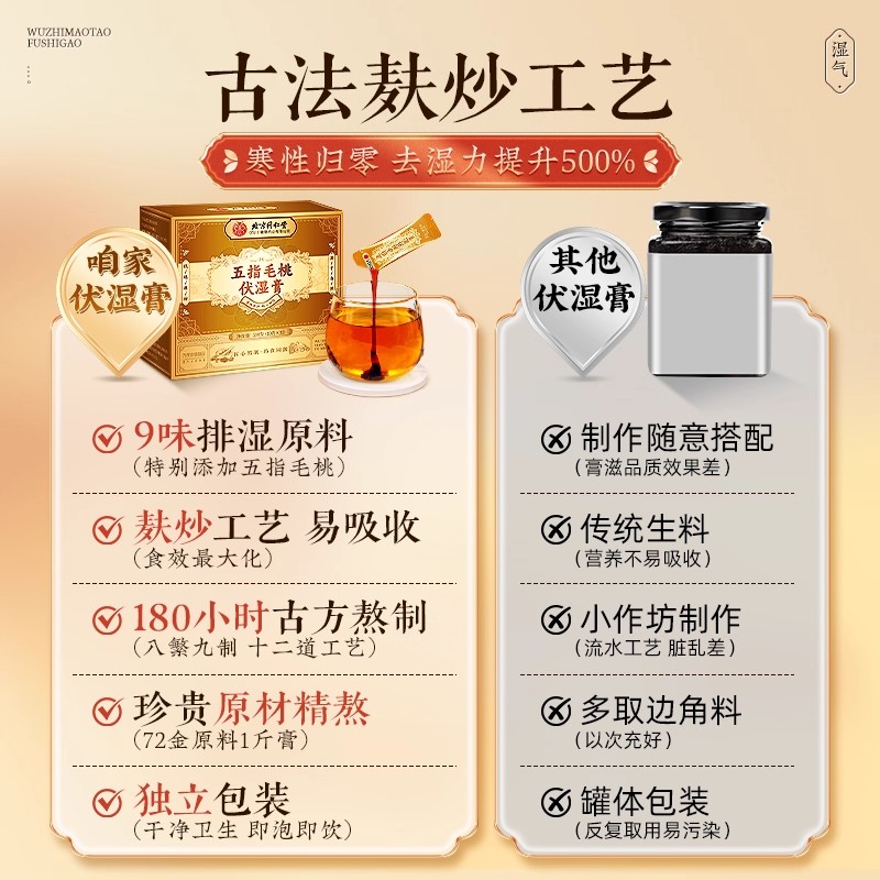 北京同仁堂茯苓膏五指毛桃伏湿膏茯湿薏仁调理脾胃祛湿膏官方旗舰