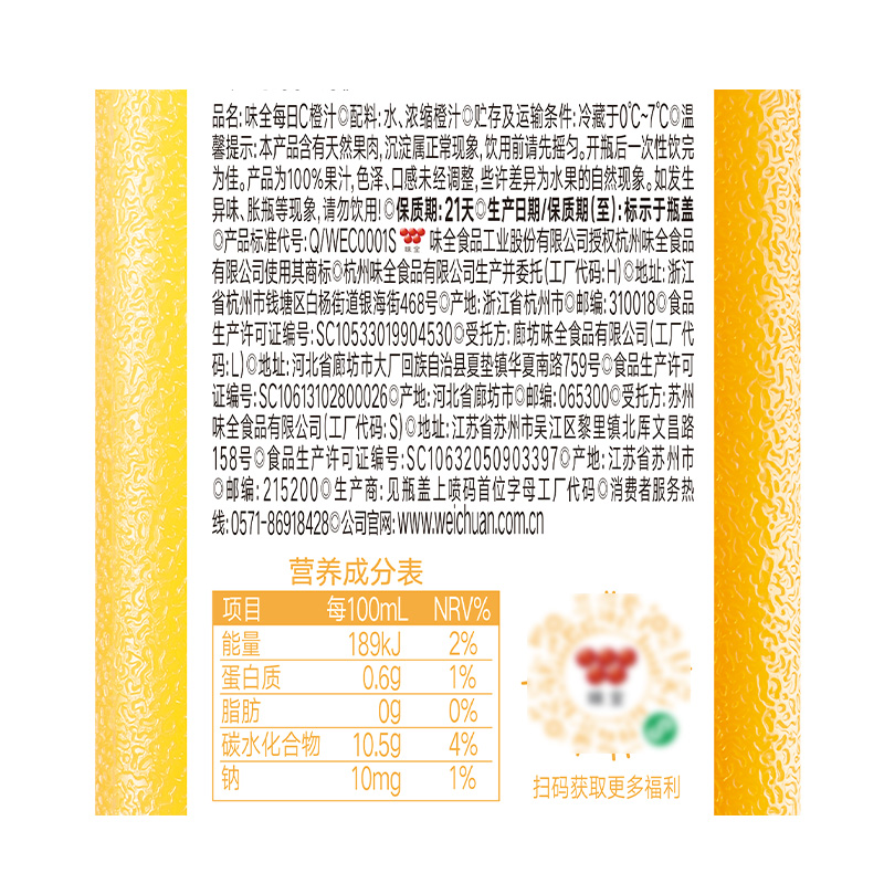 味全每日c低温果汁冷藏饮料300ml*12混合果蔬汁植物蛋白橙汁浓缩