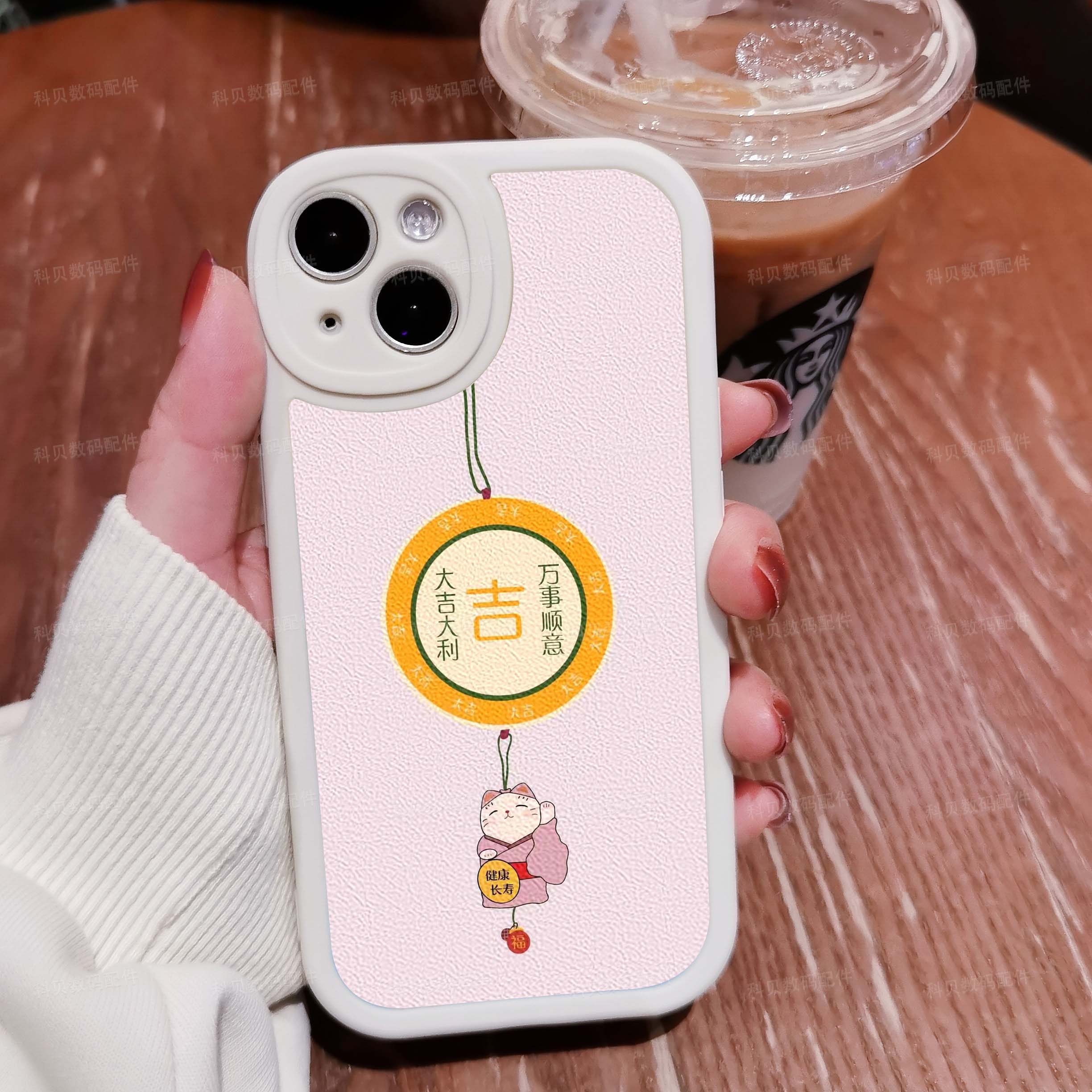 吊饰大吉适用于苹果16手机壳华为mate50中国风荣耀80字体小羊皮情侣oppoA97硅胶vivoY93S防摔小米13红米