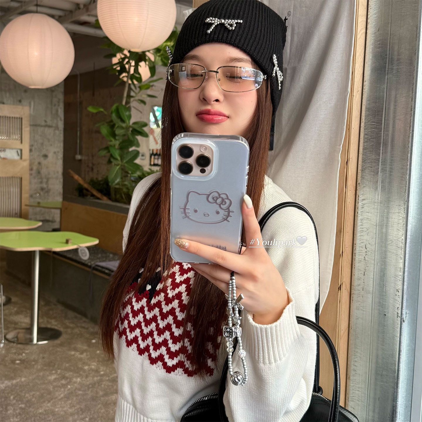 由里公园ins韩系极简可爱线条猫咪挂链16适用17pro苹果17ProMax手机壳iPhone16全包14新款16Promax保护套13女