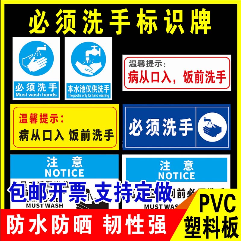 必须洗手标识牌注意离开卫生间返回工作岗位前请清洗手安全管理标语pvc塑料板铝板告示警示标示标志牌