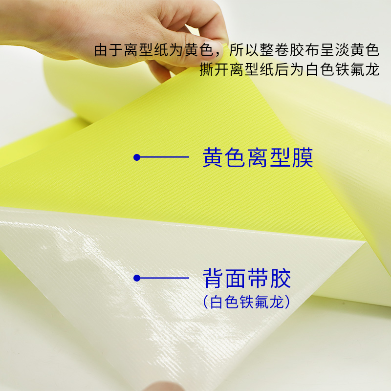带底纸白色特氟龙胶带聚四氟乙烯铁氟龙胶布加保护纸离型纸 耐高温胶带防火绝缘耐磨隔热布烫画滚筒防粘胶布