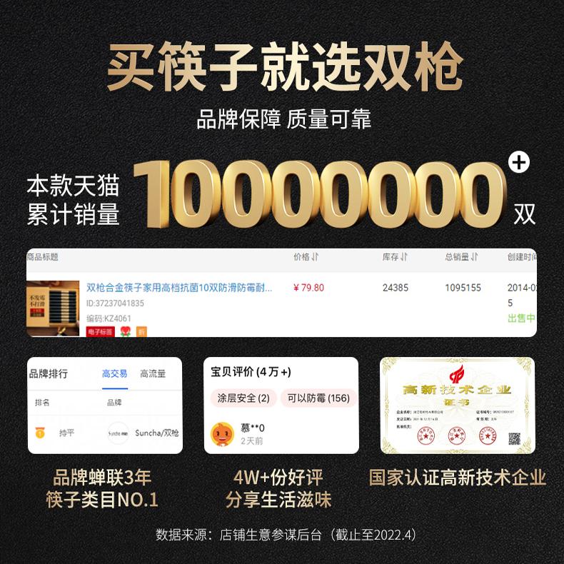 炊大皇合金筷子家用高档抗菌防霉易清洗耐高温分食一人一筷高颜值