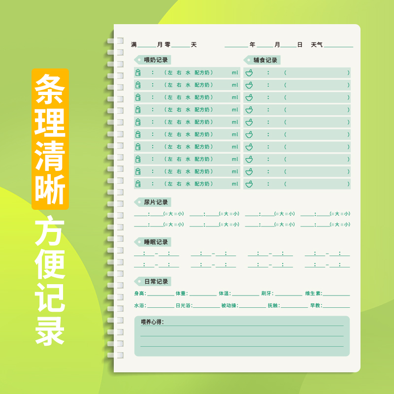 多利博士辅食婴儿喂养记录本宝宝喂奶日记本新生儿每日作息辅食成长月嫂手册喝吃奶量哺乳笔记本母婴护理日志