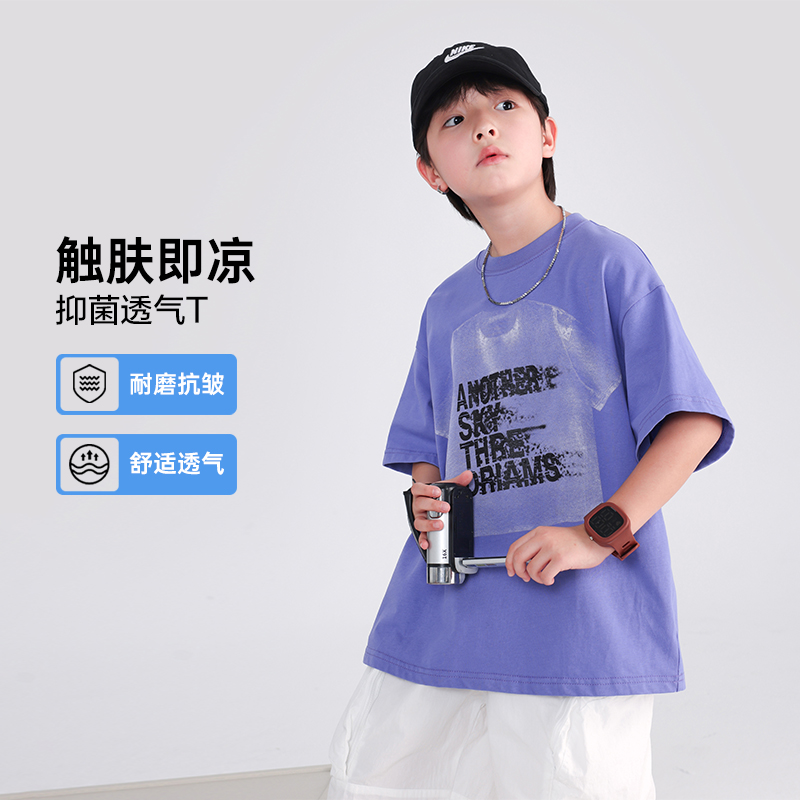 多多家男童T恤短袖凉感儿童半袖纯棉2025夏装新款中大童印花上衣