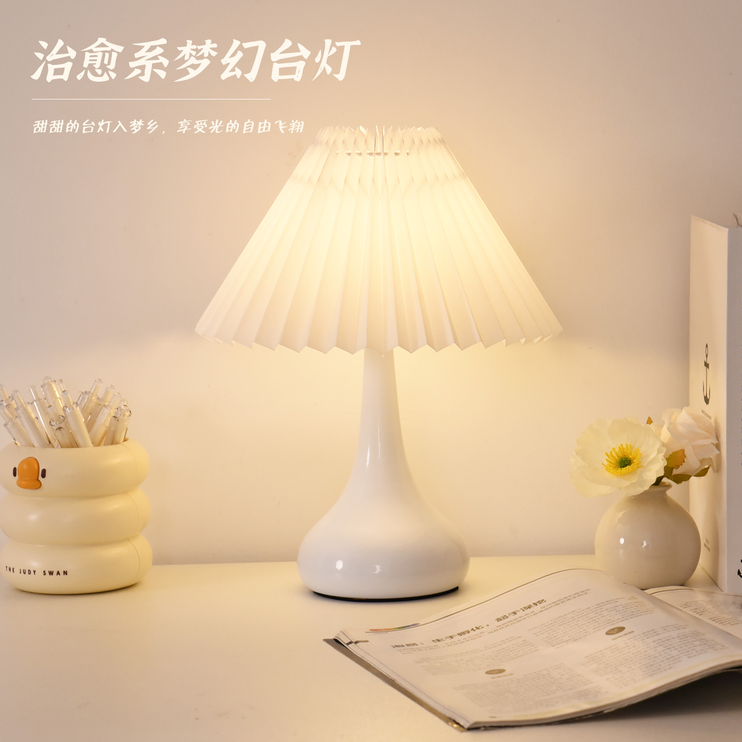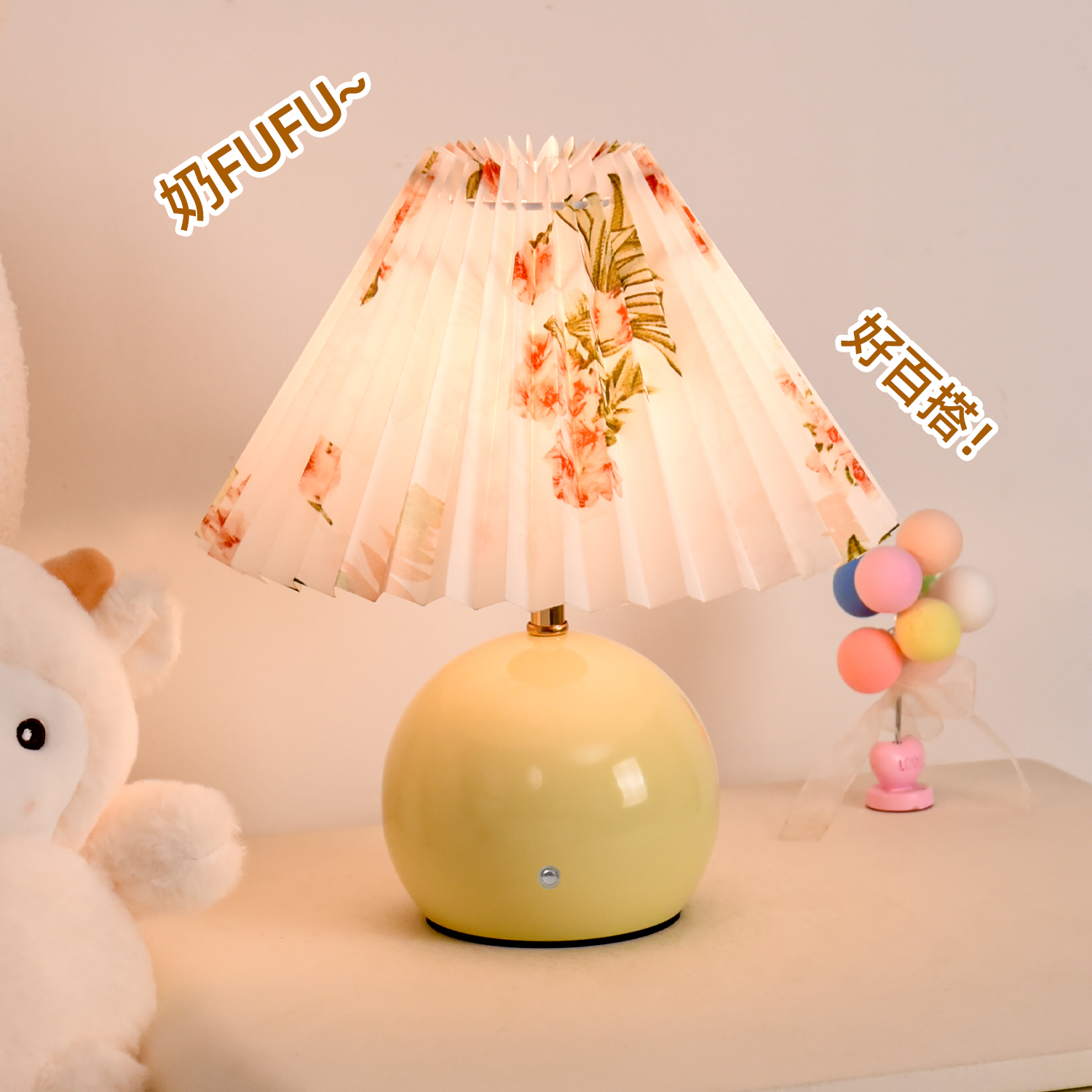 中古复古台灯床头灯卧室桌面夜灯温馨浪漫百褶装饰氛围感奶油充电