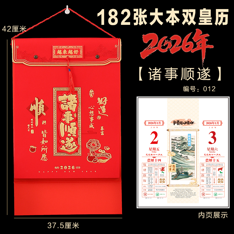 2026年加厚手撕历新年礼品福字老黄历印公司名字挂历两天一张单日
