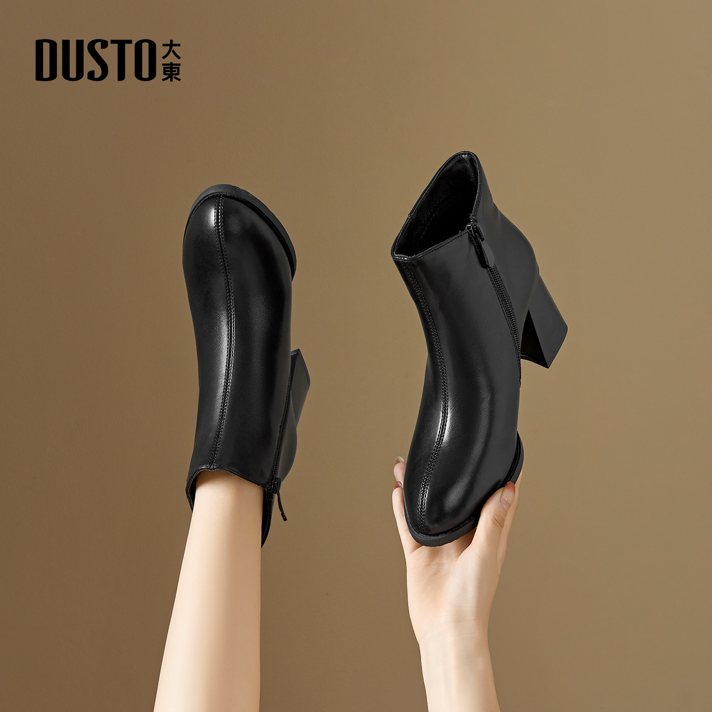 大东dd小短靴女2025新款女靴高跟妈妈靴子秋季百搭踝靴皮鞋马丁靴