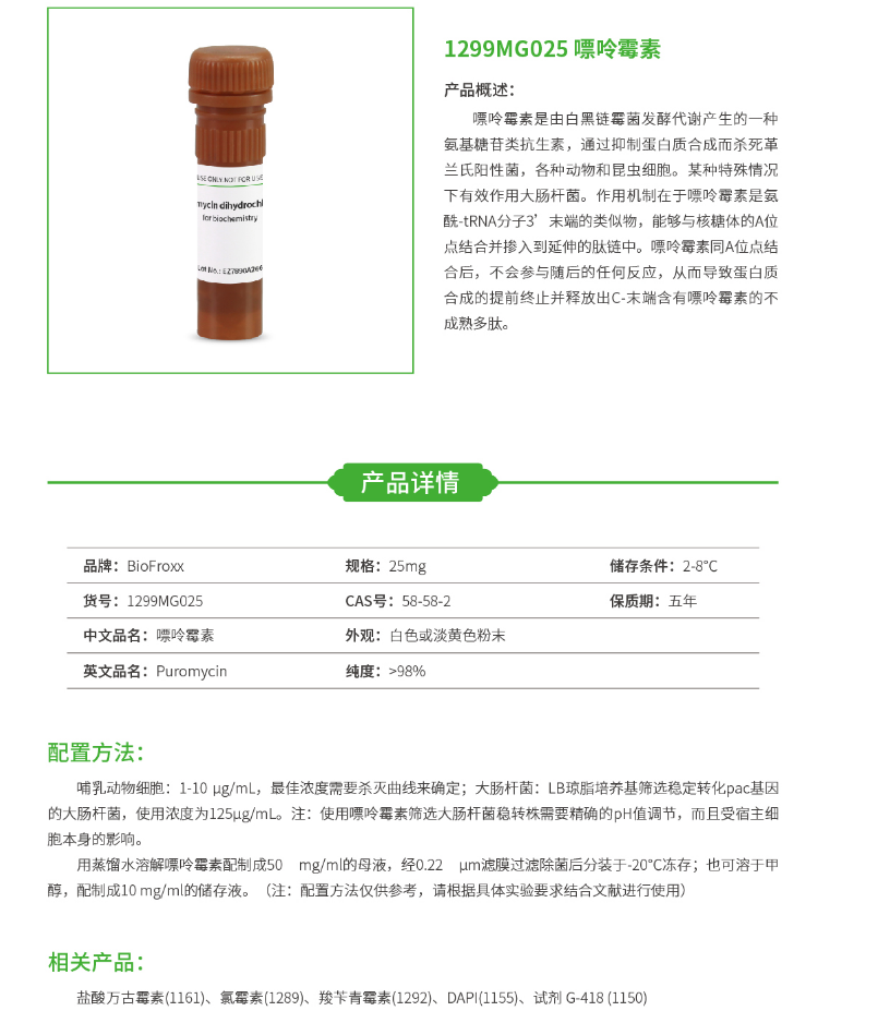 BioFroxx 1299MG025 嘌呤霉素 Puromycin 25mg