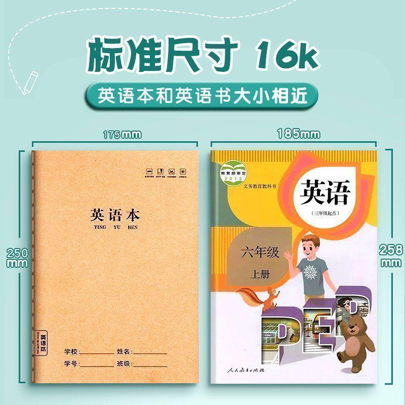 牛皮16K中小学生英语作业本子统一标准批发加厚语文数学初中生练习本作文簿科目车线笔记本双面书写不透墨