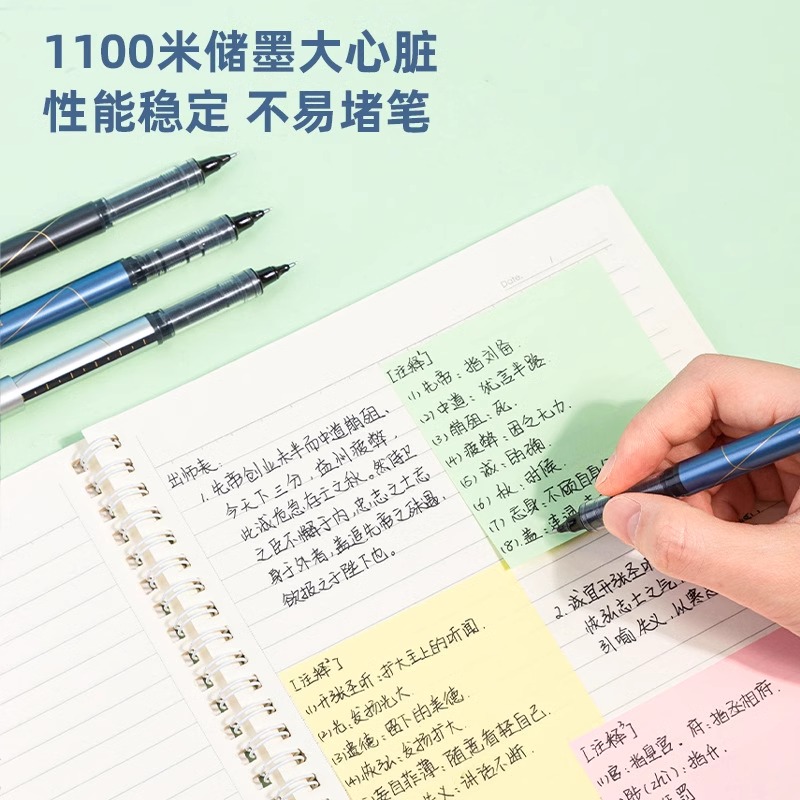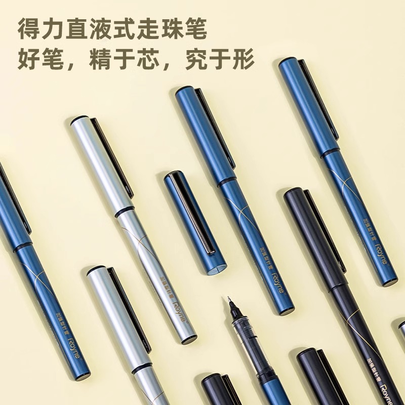 得力直液式走珠笔学生速干中性笔0.5mm针管式商务水笔ST加强型针管头大容量简约考试文具黑色签字水性笔