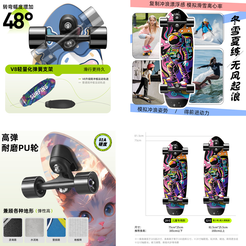 陆地冲浪板专业初学者成人儿童男女生免蹬地滑板车6到12岁陆冲板