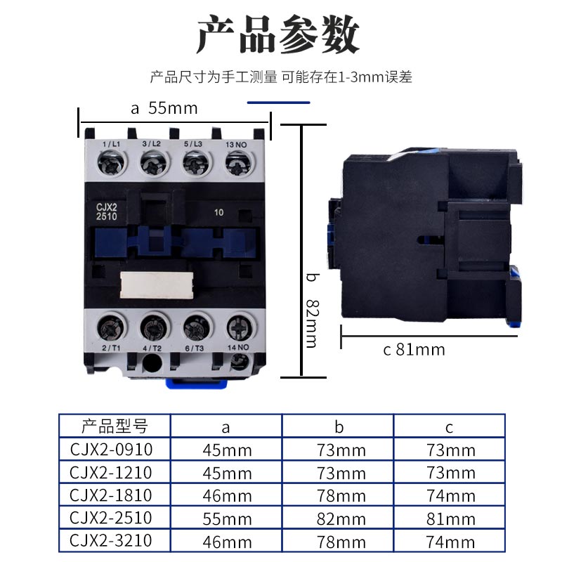 CJX2-1210交流接触器220v单相09103210251018012501三相380v吸合