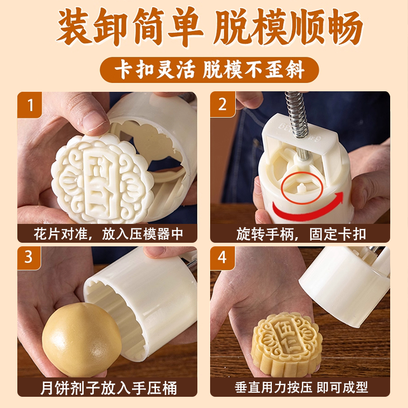 月饼模具手压式家用新款烘焙中式绿豆糕50克75糕点冰皮压花造型